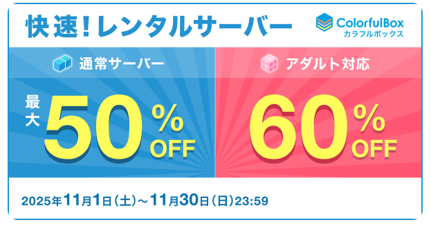 【 11月限定 】月額317円〜始める本格レンタルサーバー《 全プラン割引 》最大60%OFF!