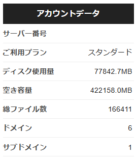 エックスサーバーのスタンダードプランを1契約しかしていませんが、422GBも余っていますね。