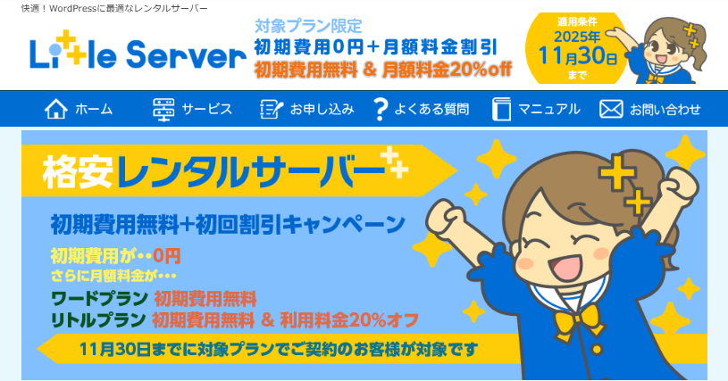 リトルサーバーは2025年11月30日まで下記キャンペーンをやっています。