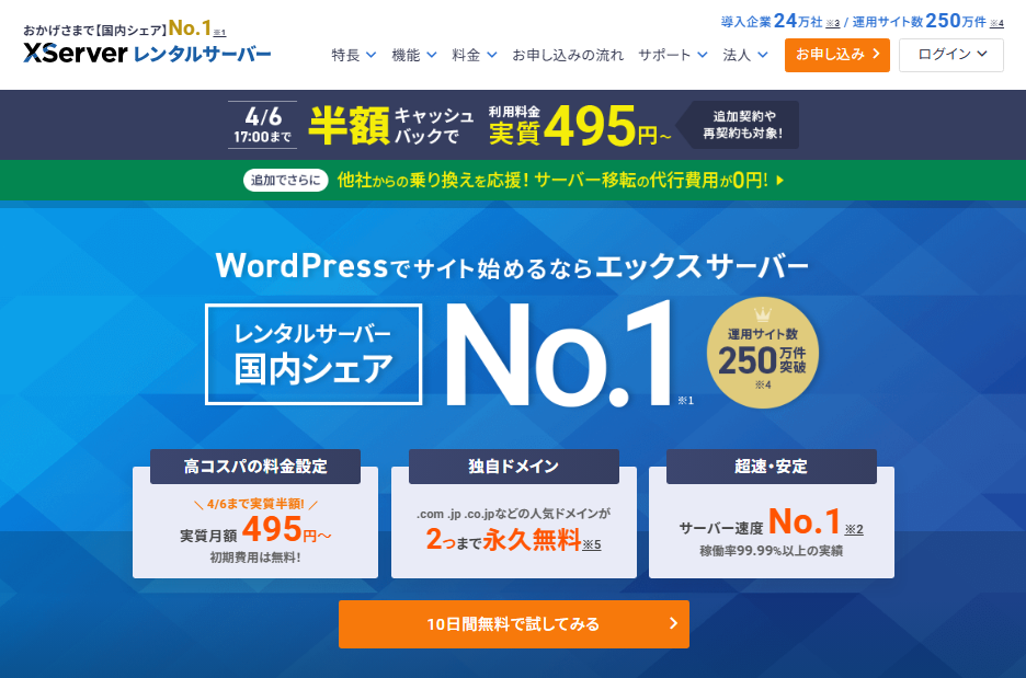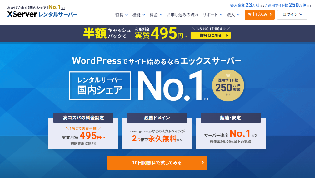 エックスサーバー公式:https://www.xserver.ne.jp/
