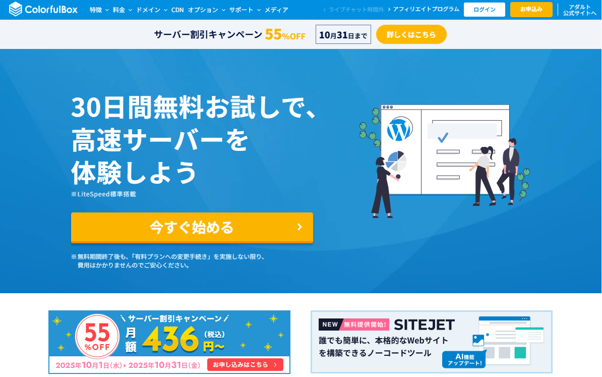 10月1日(水)より、通常レンタルサーバーが55%OFFになるキャンペーンを実施いたします。