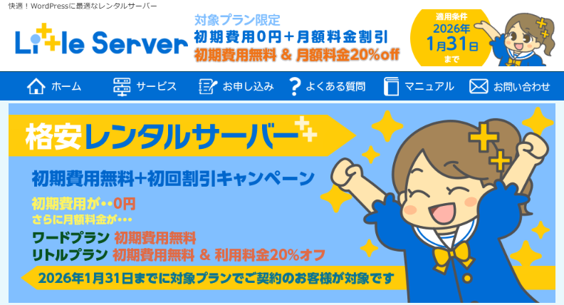リトルサーバーは2026年1月31日まで下記キャンペーンをやっています。
