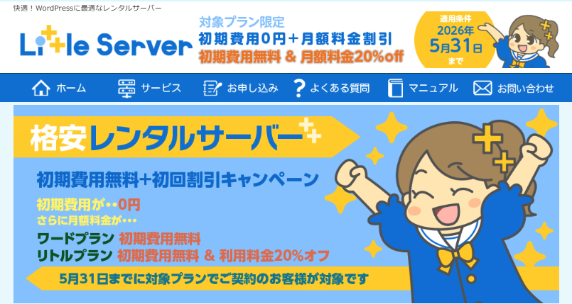リトルサーバーは2026年5月31日まで下記キャンペーンをやっています。
