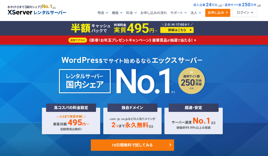 エックスサーバー公式:https://www.xserver.ne.jp/