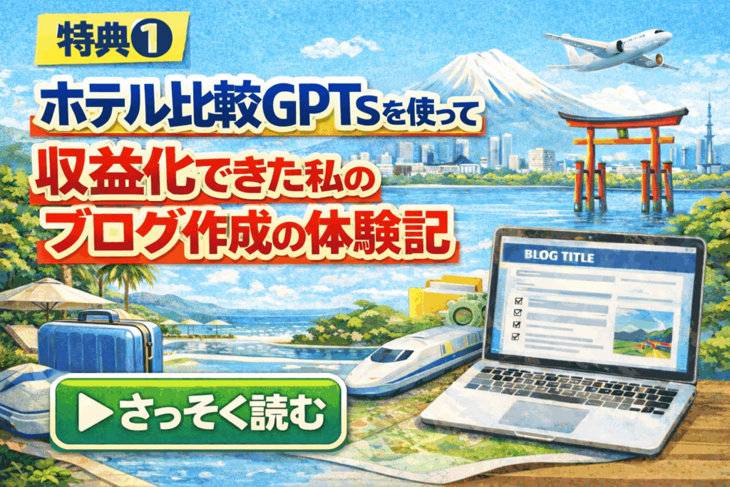 私の紹介リンクからホテル比較GPTsを購入してくださった方へ:特典②と③をプレゼント