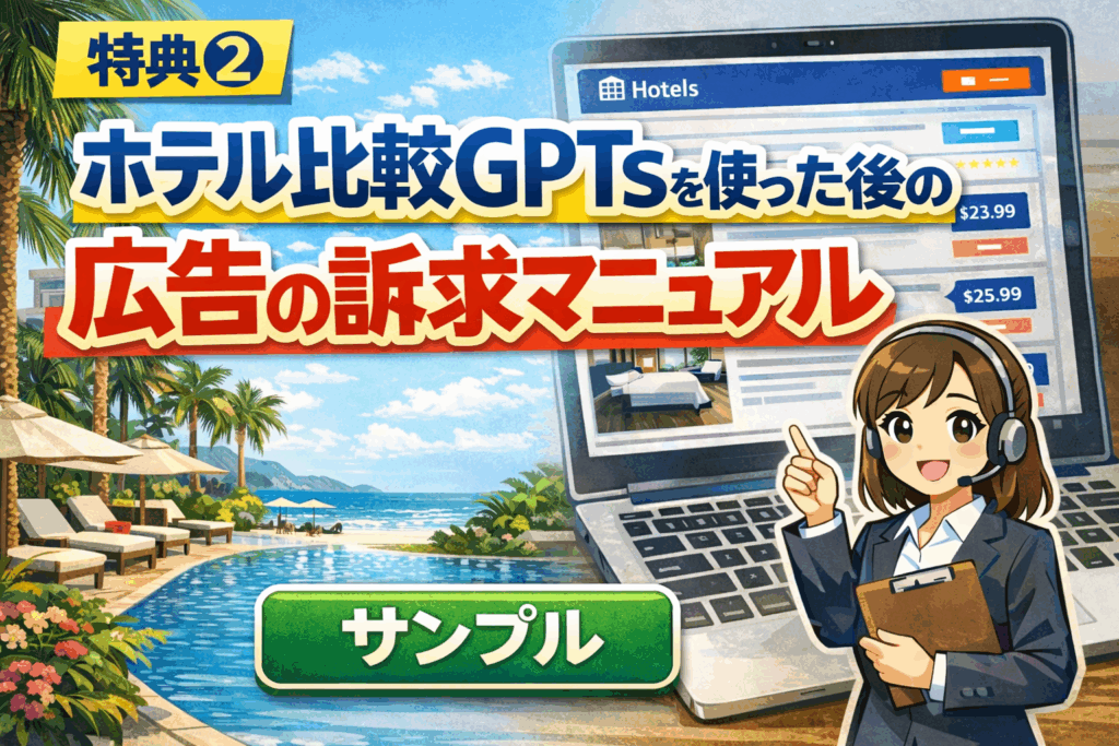 - ホテル比較GPTsを使った後の、広告の訴求マニュアル