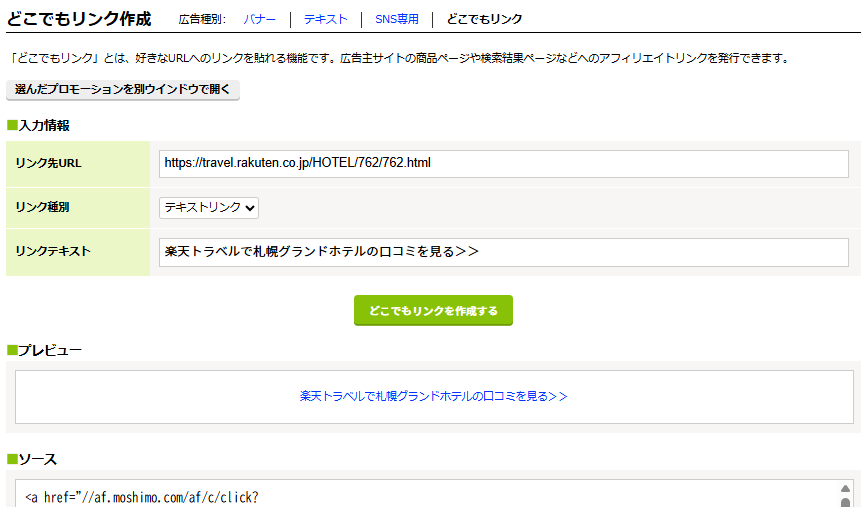 これまで、もしもアフィリエイトの楽天トラベルのリンクの貼り方を解説してきたわけですが、