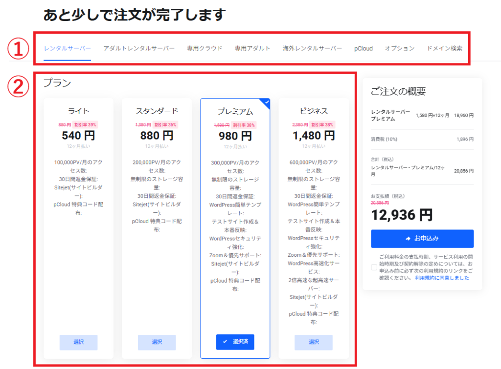 ②のプランを選択します。